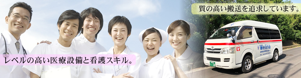 当社は神戸市消防局の患者搬送乗務員の講習を受け、神戸市消防局の認定を受けています。当社の車にはあらゆる状態の患者様に対応出来るよう、状態によっては看護師が同乗し、様々な医療機器を搭載し、患者様を安全に搬送致しております。ストレッチャーや車イスでそのまま全国どこへでも移動できます。転院、受診、入退院、ご旅行などお客様のプライベート車としてお気軽にご用命ください